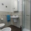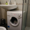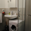 Un ampio bagno con cabina doccia e lavatrice completa l'appartamento.